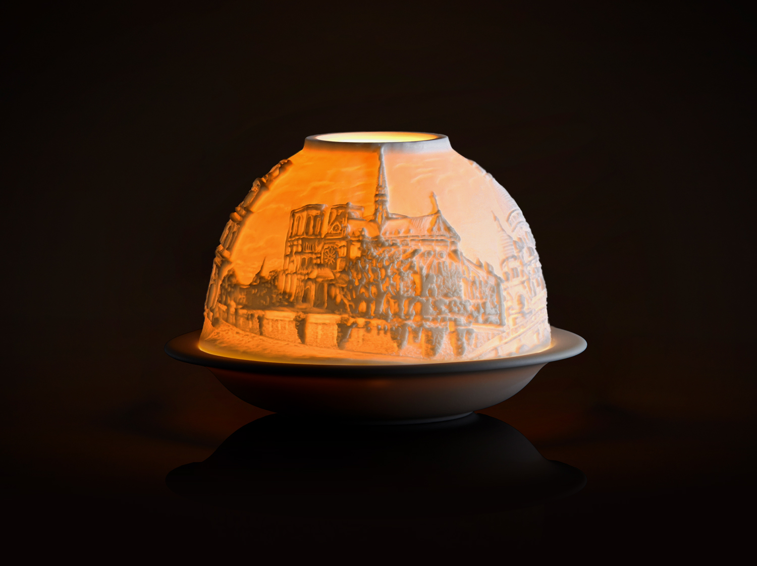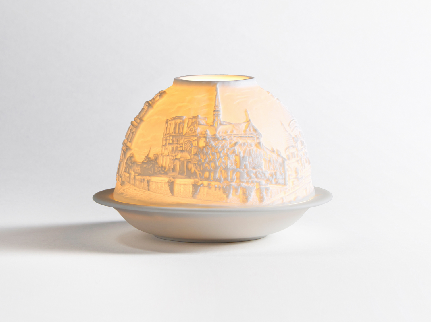 VotivelightTM in bisque porcelain with Places of Paris engraved motif