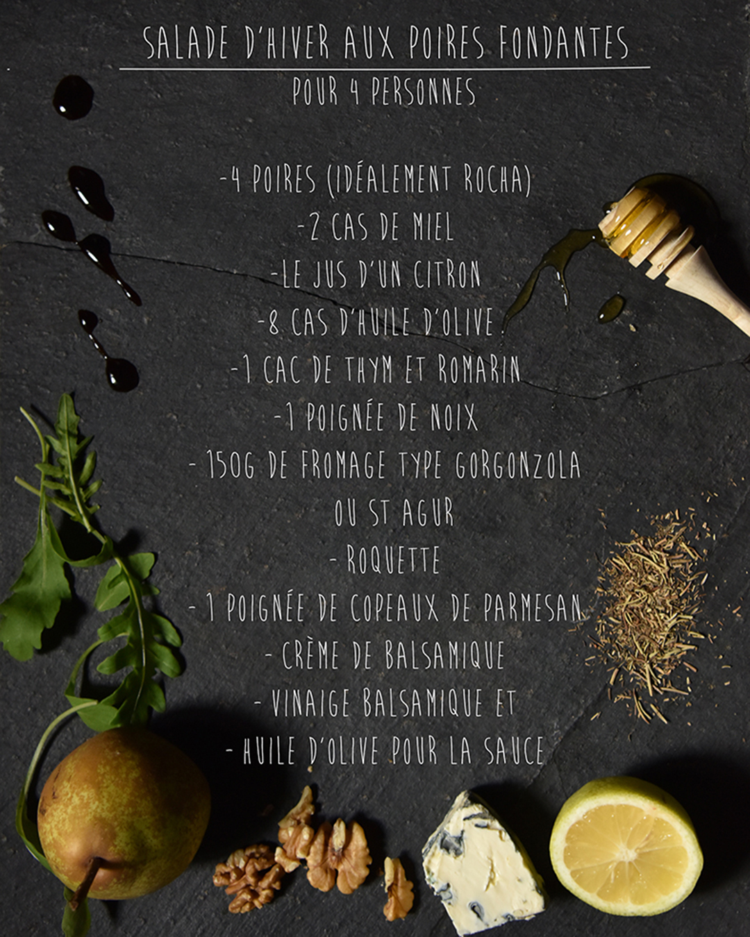 Mix the honey, the lemon juice, the olive oil, the thyme and rosemary in a bowl. Pour the mix in the pears’ hole, and brush them with it. Bake in preheat oven at 200°C, for 10 to 15 minutes.