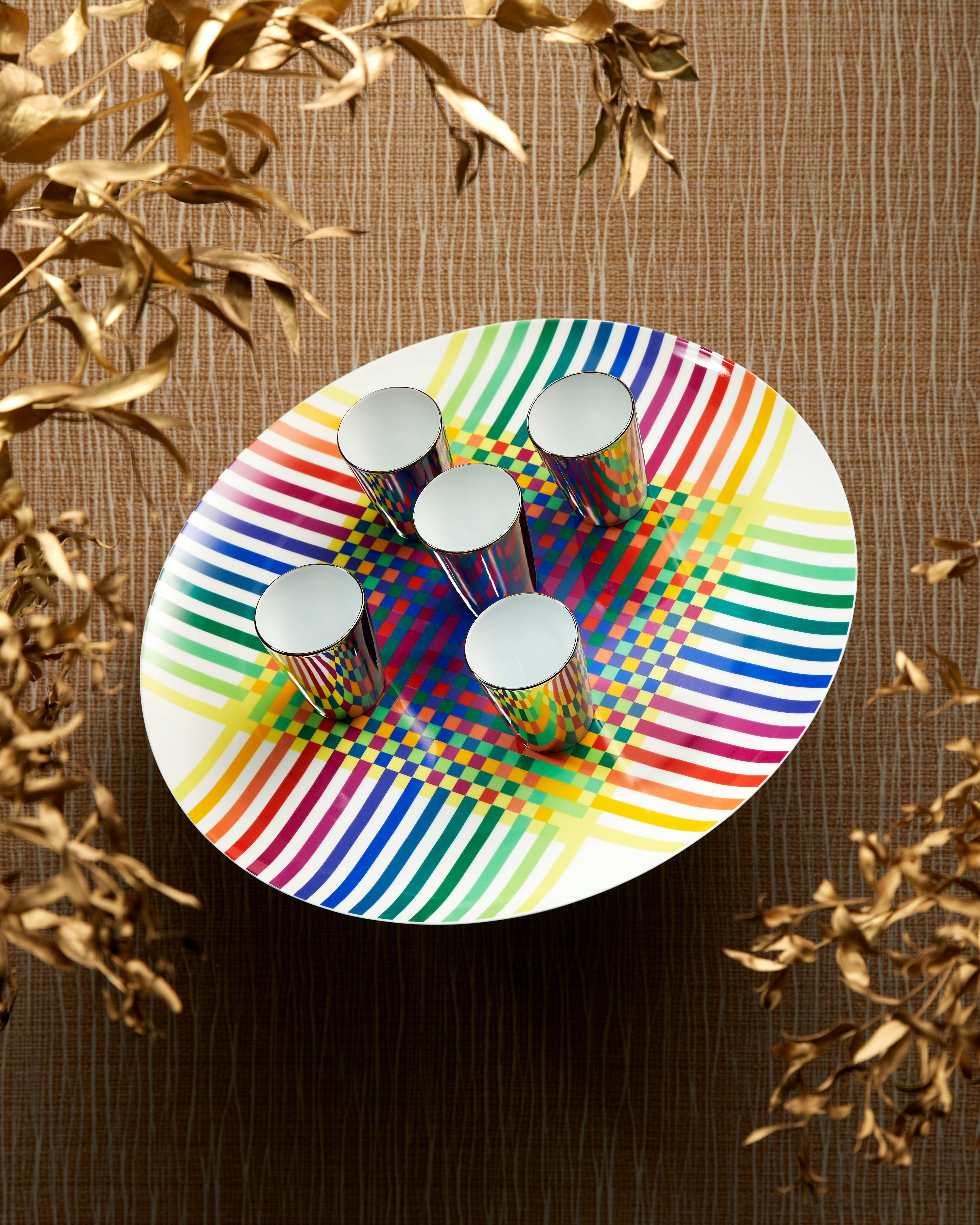 Artiste précurseur de l’art cinétique et de l’Op Art (Optical art), membre fondateur du G.R.A.V. (Groupe de Recherche d’Art Visuel) et lauréat du grand prix international de la biennale de Venise en 1966, Julio Le Parc (né en 1928 en Argentine) est un personnage emblématique de l’histoire de l’art. Ses œuvres proposent une expérience sensorielle alliant lumière, couleurs, énergie et mouvement. La collaboration avec Bernardaud montre à quel point la pratique de cet artiste infatigable demeure actuelle, ludique, et innovante.